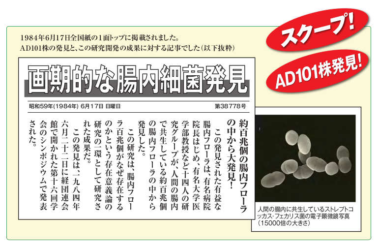 - 全国紙(発行部数1位)の朝刊1面トップにスクープされて40年、延べ300万人を超える愛用者、腸内フローラの元祖
