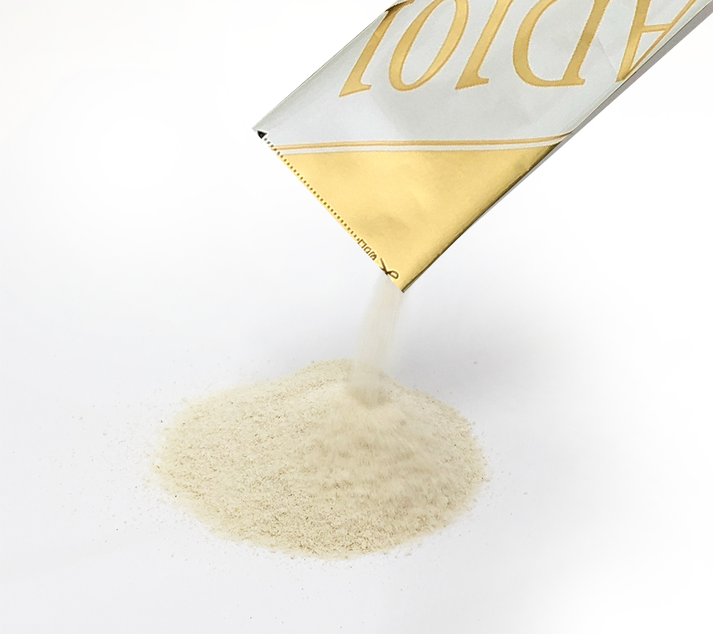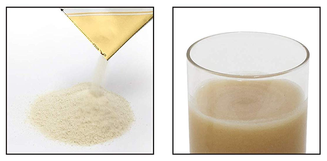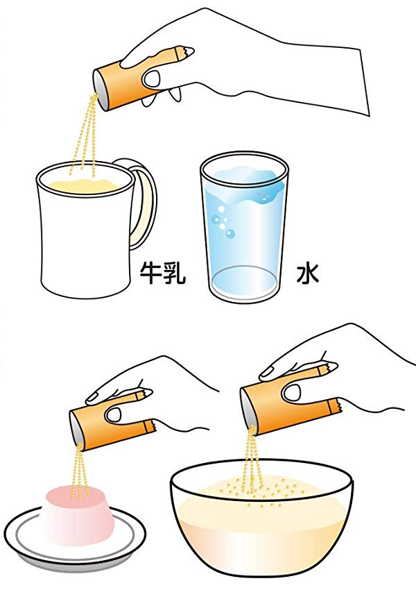 水、牛乳、ジュース等によく溶かして、100cc~120cc程度を目安にお好みに合わせて調整してください。